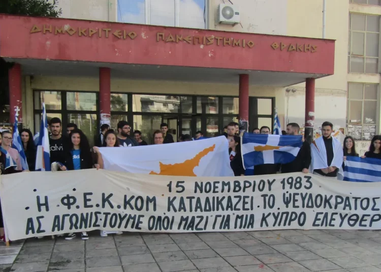 Με το σύνθημα «Ελλάς-Ελλάς σκέπασε κι εμάς» οι Κύπριοι φοιτητές της Κομοτηνής χαιρετίζουν την ενίσχυση της άμυνας στο νησί
