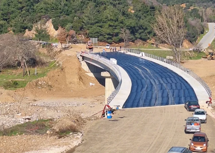 Μετά τη στεγανοποίηση της πλάκας, απομένουν οι ασφαλτοστρώσεις και τα στηθαία ασφαλείας για την ολοκλήρωση της