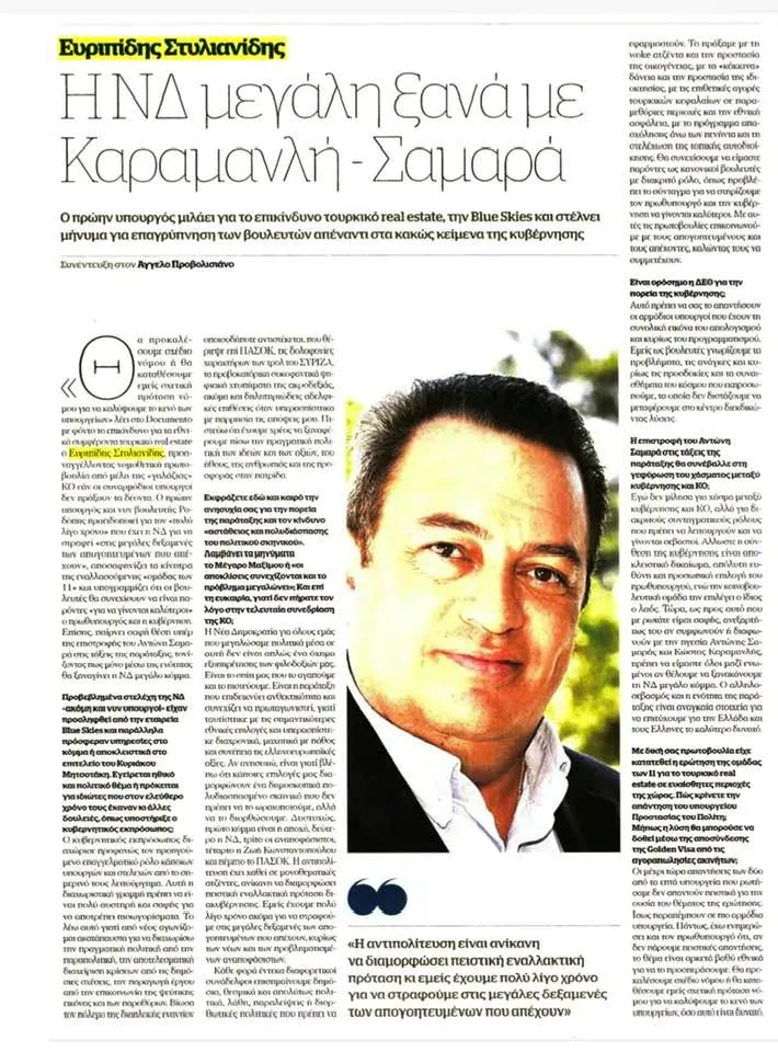 Ακολουθεί, η συνέντευξη του Ευριπίδη Στυλιανίδη στην εφημερίδα Documento: