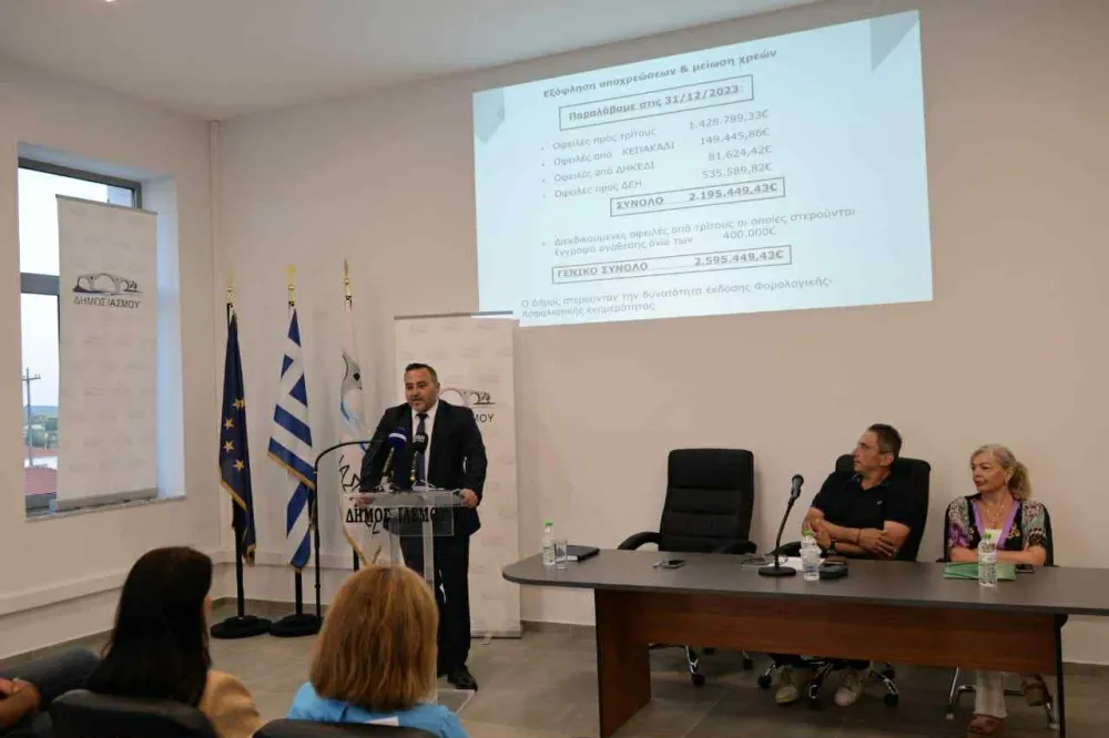 Τον απολογισμό πεπραγμένων για το έτος 2024 παρουσίασε τη Δευτέρα 30 Ιουνίου ο Δήμαρχος Ιάσμου, Τζανέρ Ιμάμ, ενώπιον δημοτών, συνεργατών και προσκεκλημένων. Η ομιλία επικεντρώθηκε στα οικονομικά δεδομένα του Δήμου, στις παρεμβάσεις σε υποδομές, ύδρευση, άρδευση, κοινωνικές υπηρεσίες, καθώς και στη βελτίωση της διοικητικής λειτουργίας.