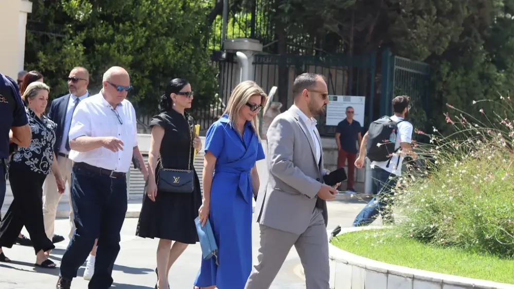 Αποχωρώντας, η κυρία Καρυστιανού και άτομα που τη συνόδευαν κράτησαν ενός λεπτού σιγή για τα θύματα των Τεμπών μπροστά στο κοινοβούλιο.