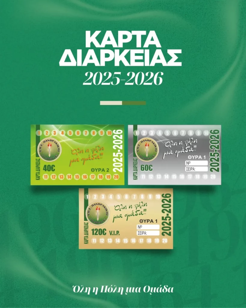 Παράλληλα, τέθηκαν σε κυκλοφορία οι Κάρτες Διαρκείας για τη σεζόν 2025-26. Οι φίλαθλοι του Πανθρακικού μπορούν να τις προμηθεύονται καθημερινά από τα γραφεία της ομάδας στην οδό  Ανδρούτσου 22.
