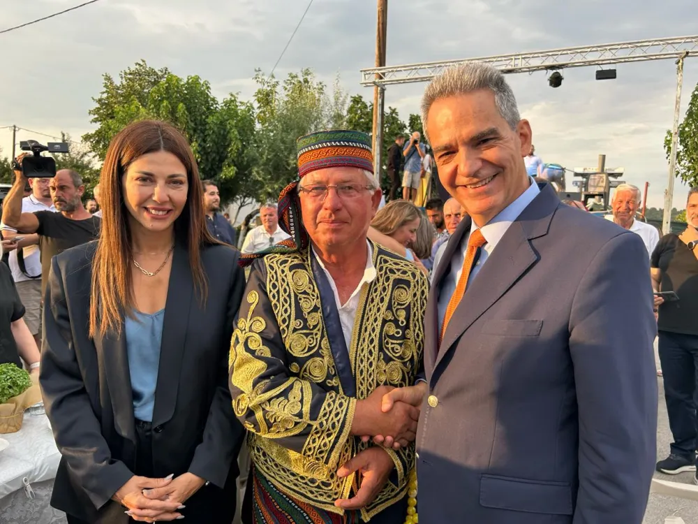 «Σήμερα δεν περπατάμε, πετάμε από τη χαρά μας», είπαν στην κ. Ζαχαράκη κάτοικοι της περιοχής, ενώ ενθουσιώδης ήταν η υποδοχή της και του Αγγελου Συρίγου στην πλατεία της Ρούσσας, όπου έγινε η τελετή έναρξης των τριήμερων εορταστικών εκδηλώσεων με τίτλο «ΧΙΛΙΑ 2025».