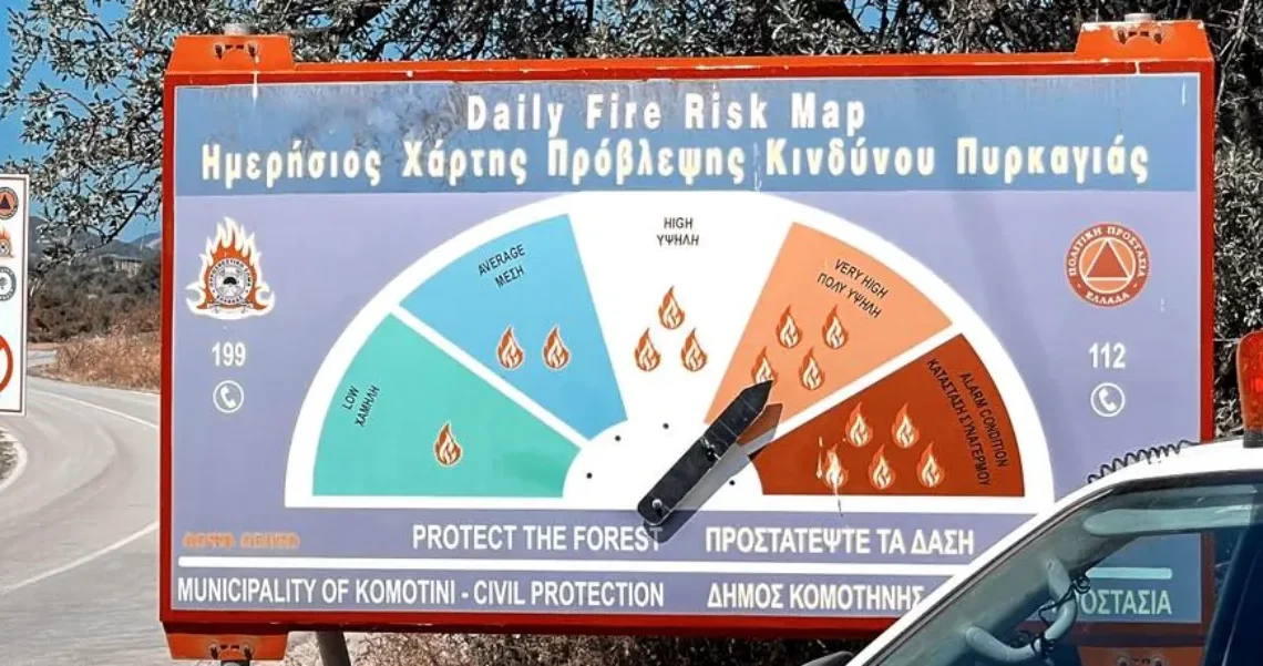 Πολύ υψηλός κίνδυνος πυρκαγιάς (κατηγορία 4) προβλέπεται για την Περιφερειακή Ενότητα Ροδόπης την Παρασκευή 15 Αυγούστου 2025, σύμφωνα με τον Χάρτη Πρόβλεψης Κινδύνου Πυρκαγιάς της Γενικής Γραμματείας Πολιτικής Προστασίας.