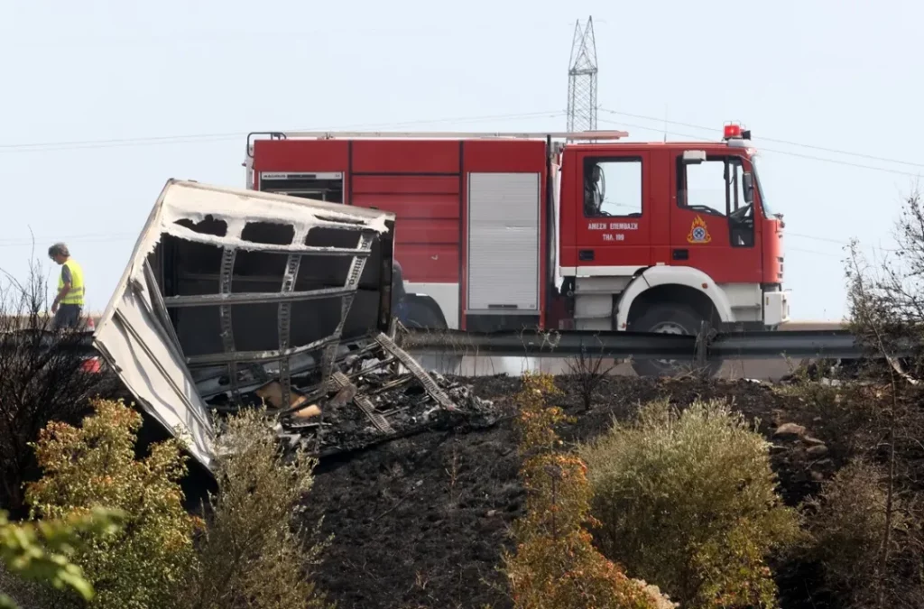 Σοβαρά τραυματισμένος είναι και ο Βούλγαρος οδηγός του φορτηγού, ενώ με ελαφρά τραύματα μεταφέρθηκαν στο νοσοκομείο άλλοι τέσσερις άνθρωποι που ενεπλάκησαν στο δυστύχημα. Η φωτιά επεκτάθηκε και περιμετρικά της Εγνατίας Οδού, σε αγροτική έκταση.