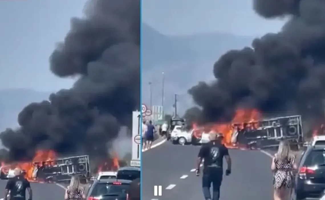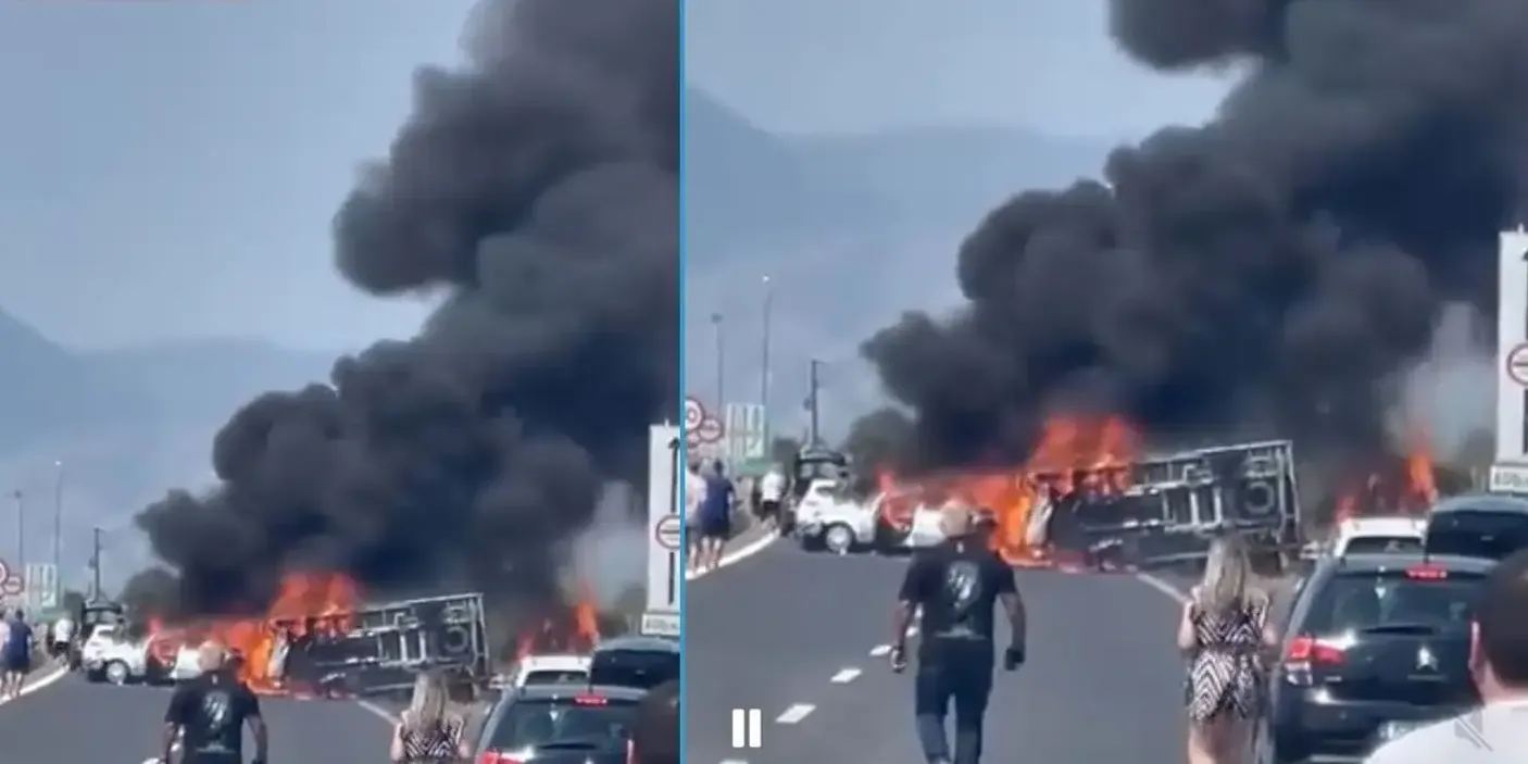 Από τη σφοδρή σύγκρουση εκδηλώθηκε φωτιά, με τρεις ανθρώπους να απανθρακώνονται και μία γυναίκα να τραυματίζεται σοβαρά.