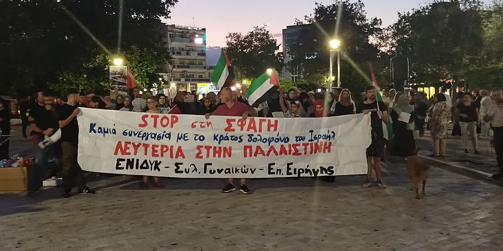 Συγκέντρωση αλληλεγγύης στον παλαιστινιακό λαό πραγματοποιήθηκε το απόγευμα της Κυριακής 24 Αυγούστου στην κεντρική πλατεία Κομοτηνής, με τη συμμετοχή πολιτών και φορέων. Η εκδήλωση περιλάμβανε σύντομη ομιλία και πορεία στους κεντρικούς δρόμους της πόλης, με συνθήματα και πανό καταδίκης της βίας στη Γάζα.