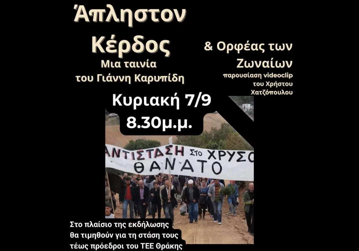 Μια βραδιά κινηματογράφου και μνήμης για τον αγώνα ενάντια στην εξόρυξη χρυσού