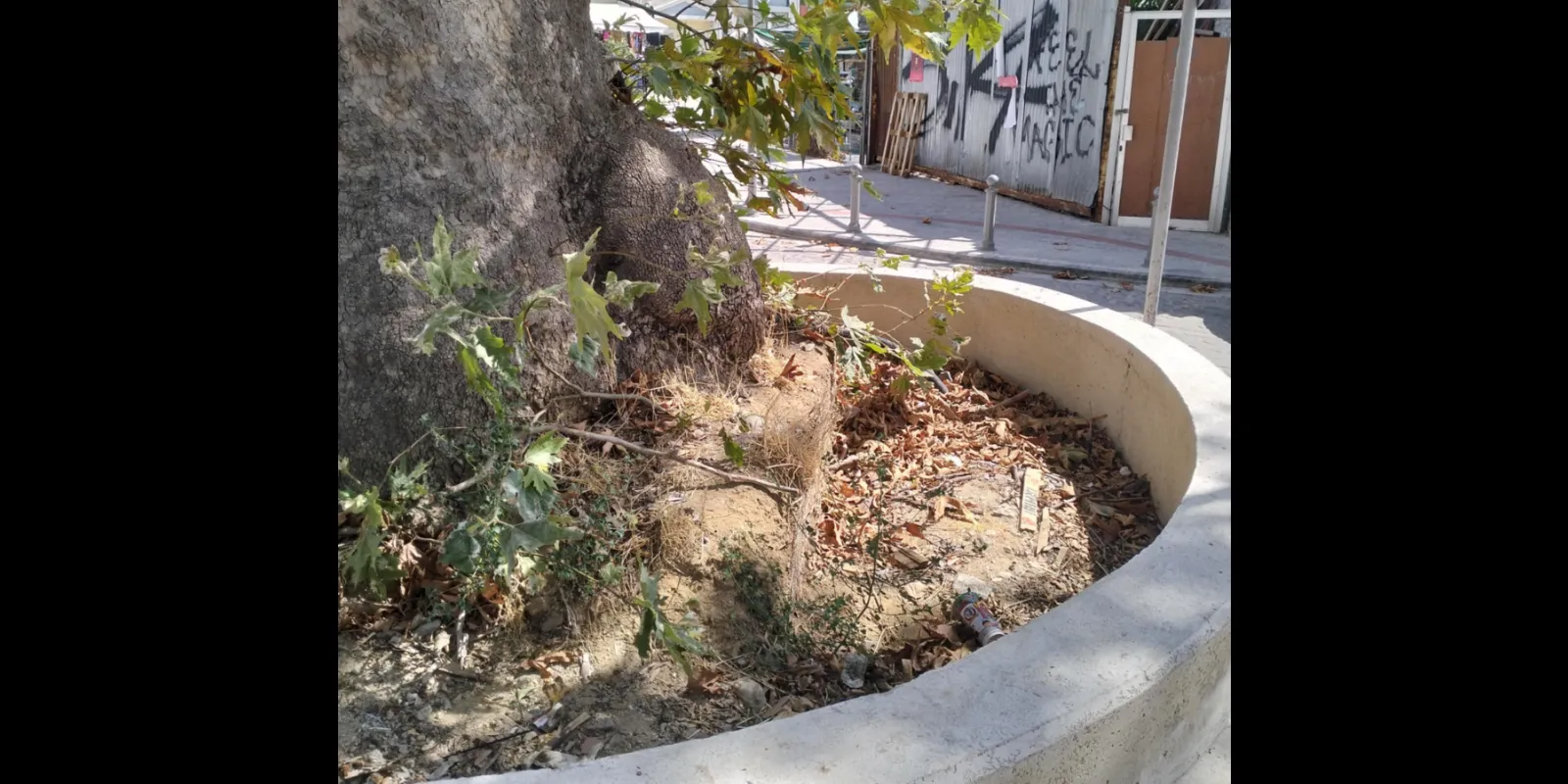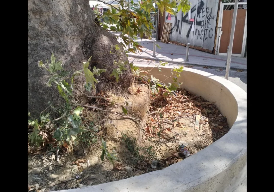 Στη συγκεκριμένη οδό ολοκληρώθηκε πρόσφατα έργο ανάπλασης, ωστόσο, όπως φαίνεται και στο βίντεο που μας απέστειλε, ο πλάτανος έχει μείνει χωρίς νερό και οι ρίζες του εκτεθειμένες, με κίνδυνο να ξεραθεί.