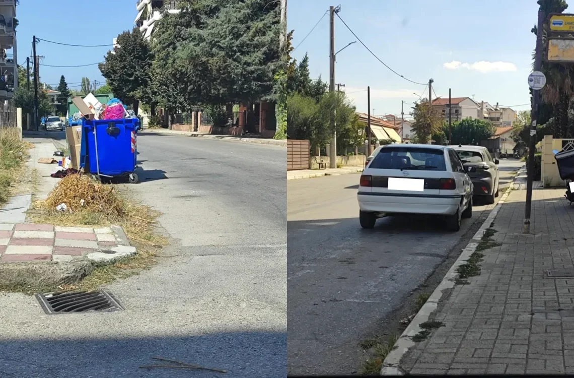 Κάδοι απορριμμάτων και παρκαρισμένα αυτοκίνητα μηδενίζουν την ορατότητα