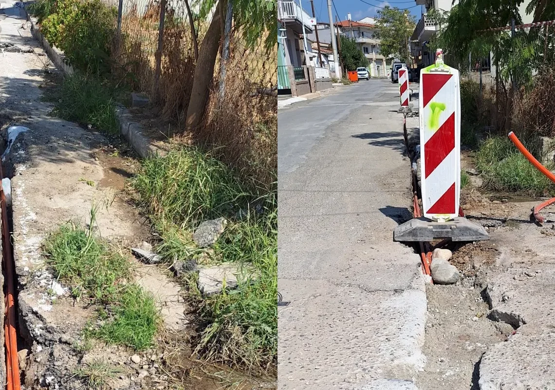 Ο κ. Βασιλειάδης περιγράφει εικόνα ταλαιπωρίας για τους κατοίκους, με κλειστούς δρόμους, ανοιγμένα χαντάκια επικίνδυνα για οχήματα και πεζούς, σκόνη, θόρυβο, αλλά και πιθανές ζημιές στο δίκτυο ύδρευσης που έχουν οδηγήσει σε διακοπές νερού σε νοικοκυριά.