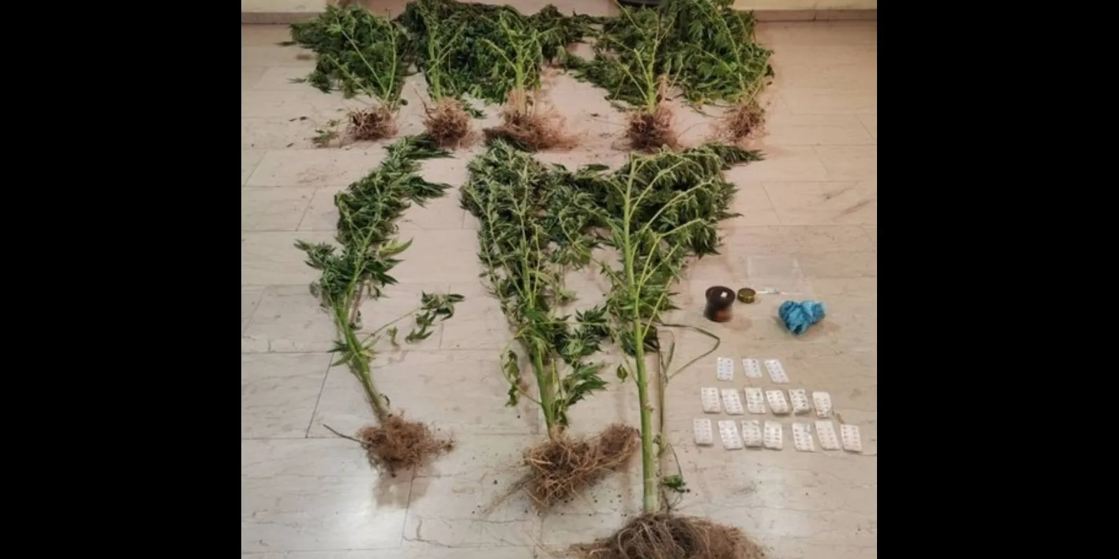 Εκριζώθηκαν 8 δενδρύλλια, ενώ εντοπίστηκαν επιπλέον στην οικία του 115 γρ. κάνναβης και 136 δισκία