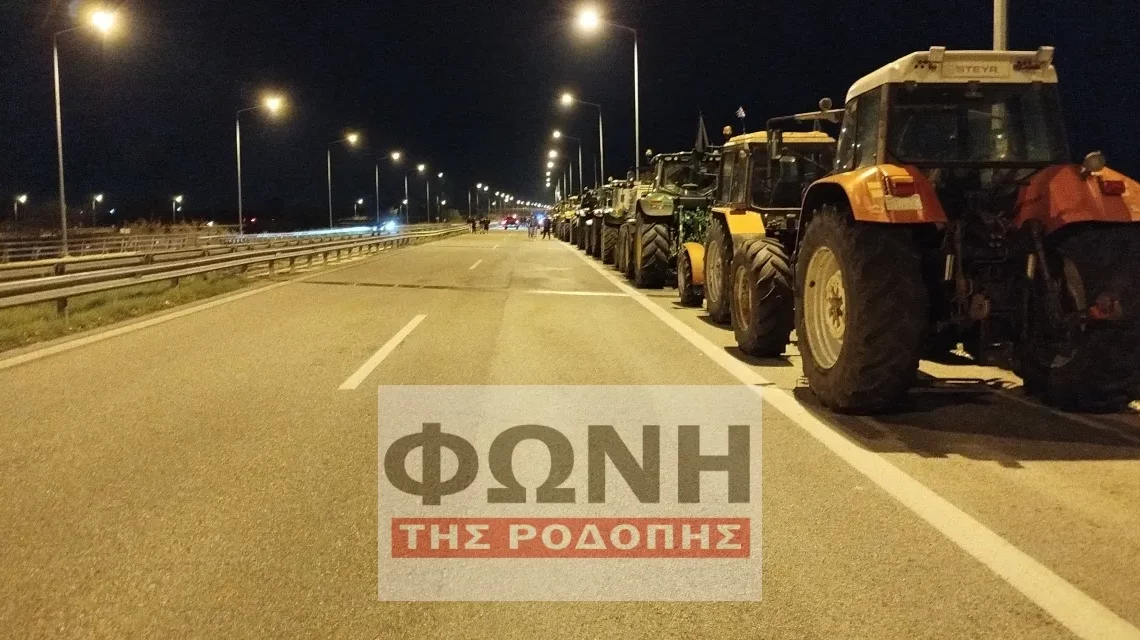 Αιφνιδιάζοντας την Αστυνομία, οι αγρότες που βρίσκονταν με τα τρακτέρ τους παρατεταγμένα στο 4ο χλμ Κομοτηνής – Ξάνθης, ανέβηκαν το βράδυ της Δευτέρας (1/12) στην Εγνατία Οδό, στον δυτικό κόμβο Κομοτηνής, κλείνοντας το ρεύμα προς Ξάνθη.