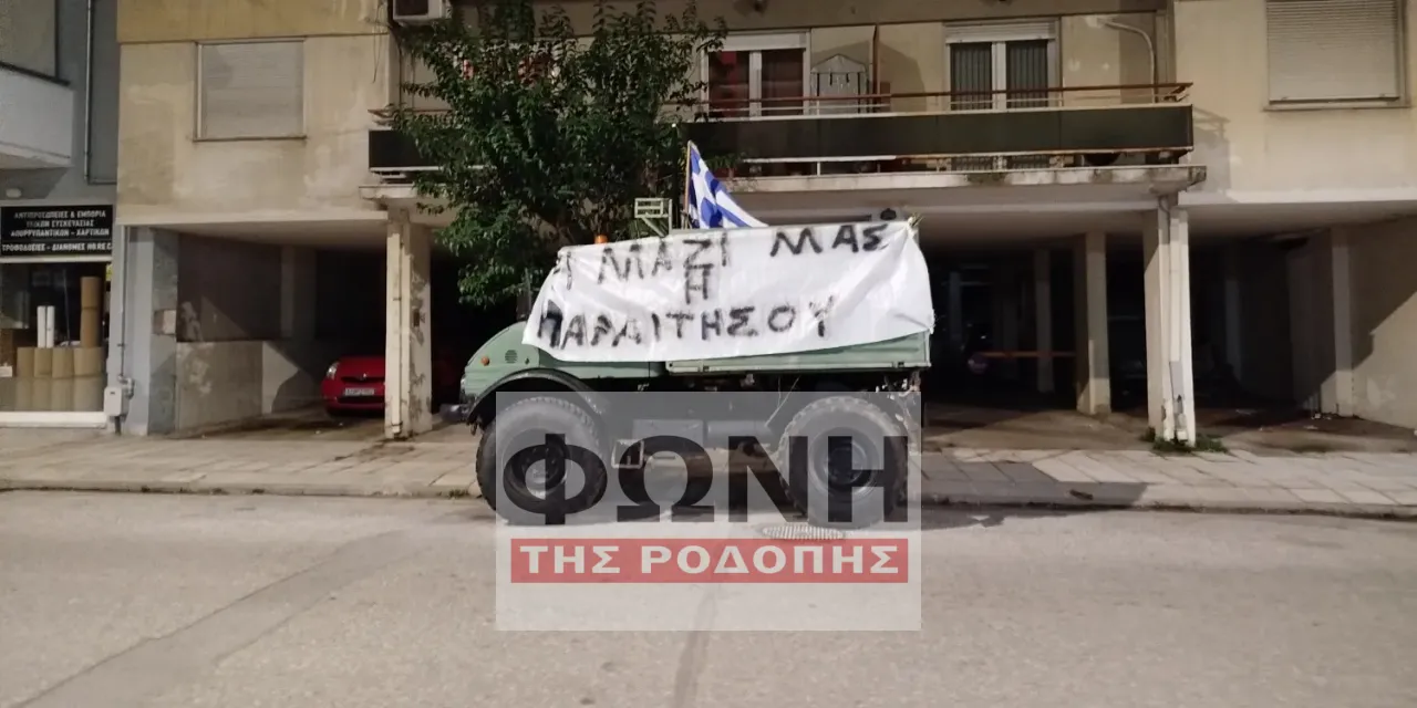 Τρακτέρ έξω από τα γραφεία των Ευριπίδη Στυλιανίδη, Ιλχάν Αχμέτ και Οζγκιούρ Φερχάτ στην Κομοτηνή, τοποθέτησαν το βράδυ της Τρίτης (2/12) αγρότες της Ροδόπης.