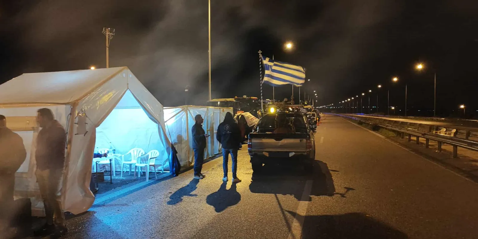 Παρά τη συνεχιζόμενη βροχόπτωση, η παρουσία παραμένει ισχυρή στο σημείο, όπου περίπου 100 αγρότες βρίσκονται αυτή την ώρα, διατηρώντας ενεργά τα μπλόκα.