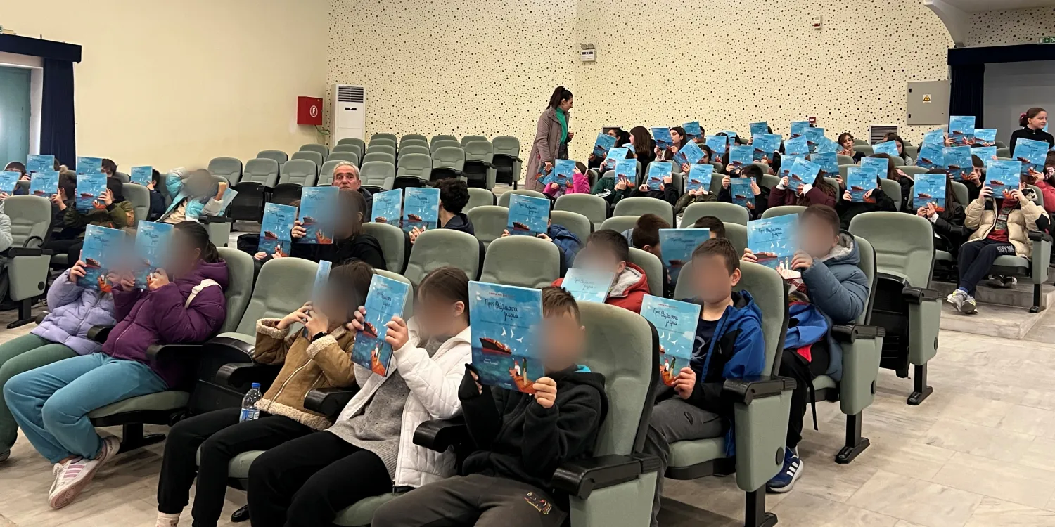 Στο τέλος της ομιλίας της, η κα Μπεζαντάκου προσέφερε στους μαθητές αντίτυπα του βιβλίου της «Προς θάλασσα μεριά…», το οποίο αποτέλεσε δωρεά ναυτιλιακών οργανισμών και εταιρειών, στο πλαίσιο της συνεχούς στήριξής τους προς τη νέα γενιά και την εκπαιδευτική κοινότητα.