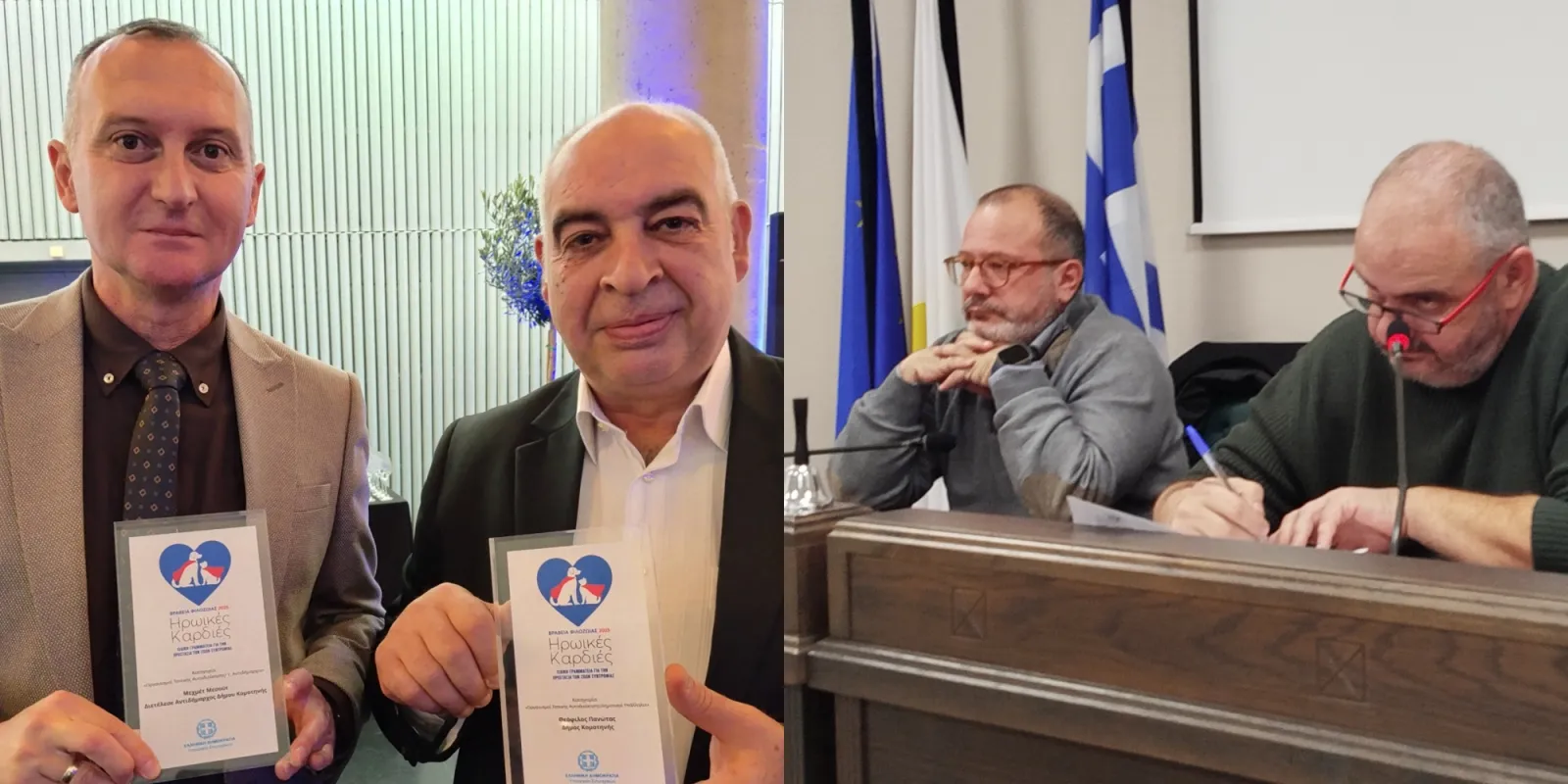 Η Ειδική Γραμματεία Προστασίας των Ζώων Συντροφιάς του Υπουργείου Εσωτερικών απένειμε τα «Βραβεία Φιλοζωίας 2025 – Ηρωικές Καρδιές», την Παρασκευή 5 Δεκεμβρίου στην Αθήνα σε ειδική εκδήλωση που τελέστηκε υπό την αιγίδα της Βουλής των Ελλήνων, των Υπουργείων Παιδείας, Θρησκευμάτων & Αθλητισμού, Προστασίας του Πολίτη, Δικαιοσύνης, Μετανάστευσης & Ασύλου, Ψηφιακής Διακυβέρνησης, της Περιφέρειας Αττικής, της Ένωσης Περιφερειών Ελλάδος και της Κεντρικής Ένωσης Δήμων Ελλάδος.