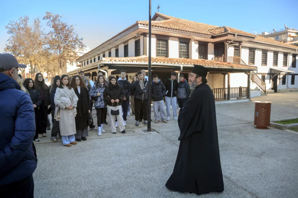 Ο Μητροπολίτης υποδέχτηκε τους μαθητές στον χώρο και, αφού μίλησε για την ιστορία του ναού, αναφέρθηκε εκτενώς στις κοινωνικές, δημογραφικές, οικονομικές και γεωπολιτικές προκλήσεις που αντιμετωπίζει η Θράκη. Τόνισε ότι η Εκκλησία, στο πλαίσιο του φιλανθρωπικού της έργου, δεν διακρίνει τους πολίτες με βάση το θρήσκευμά τους και υπογράμμισε τον ρόλο των θρησκευτικών λειτουργών στην αρμονική συμβίωση των πολιτών. Παράλληλα, σημείωσε ότι ο φιλανθρωπικός και κοινωνικός ρόλος της Εκκλησίας αποτελεί το δεύτερο σκέλος της αποστολής της, καθώς η κύρια διακονία της είναι ο αγιασμός των πιστών.