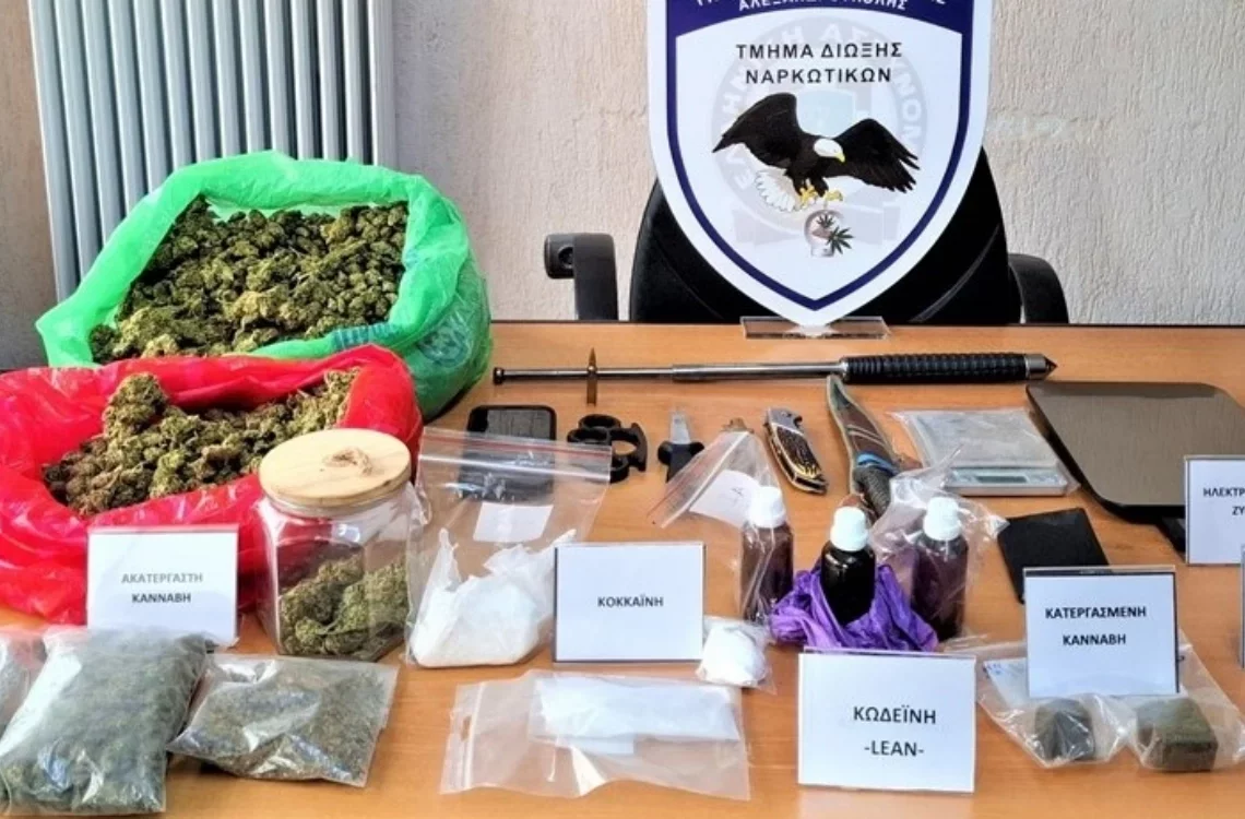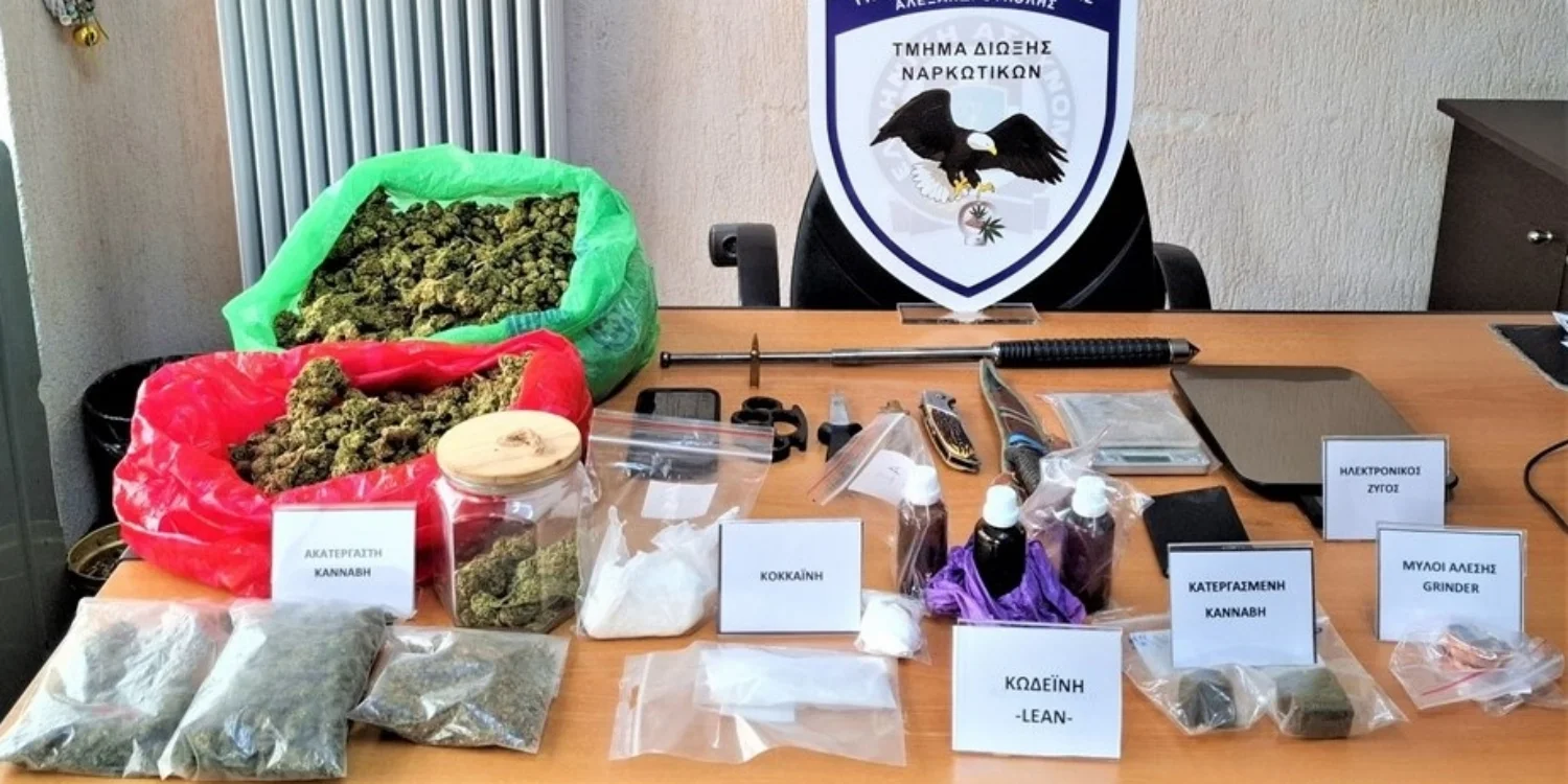 - Κάνναβη: Συνολικά 1.486,9 γραμμάρια ακατέργαστης κάνναβης, 53,1 γραμμάρια κατεργασμένης («σοκολάτα») και 110 ml της ναρκωτικής ουσίας «lean».