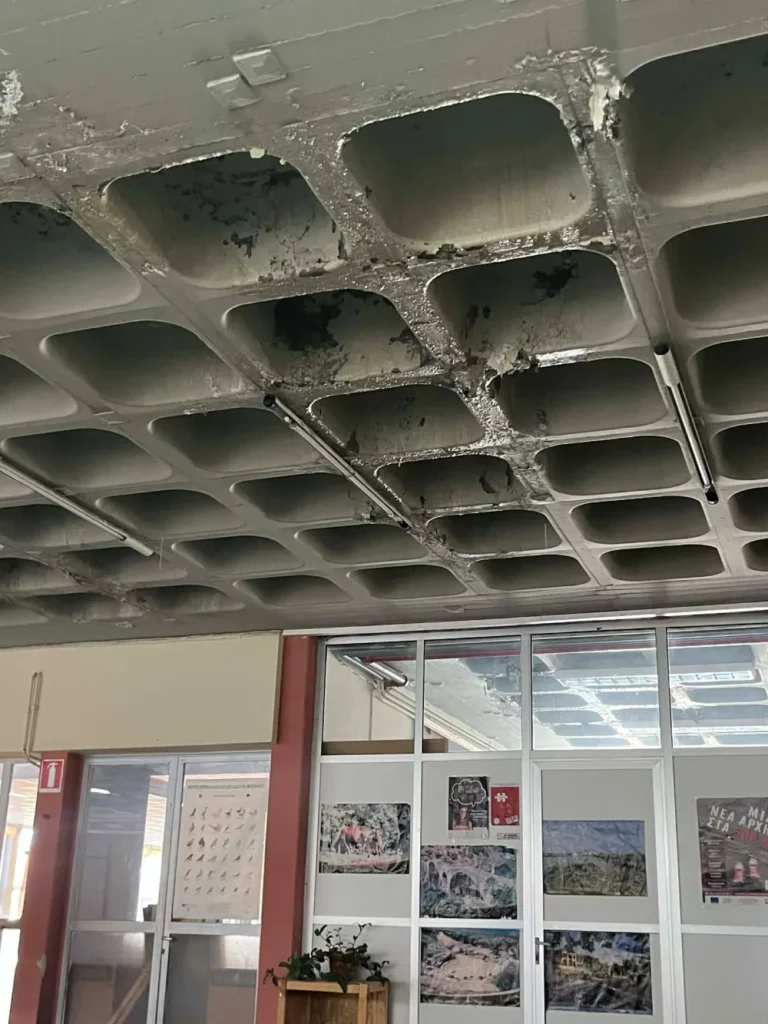 Σύμφωνα με τις καταγγελίες τους, η εισροή υδάτων είναι μόνιμο φαινόμενο: «Όποτε βρέχει το σχολείο μας στάζει μέσα, πλημμυρίζουμε, έχει παντού κουβάδες. Έχουν εκκενωθεί τα γραφεία, οι καθηγητές δεν έχουν πού να κάτσουν, εμείς δεν μπορούμε να πάμε στα εργαστήρια».