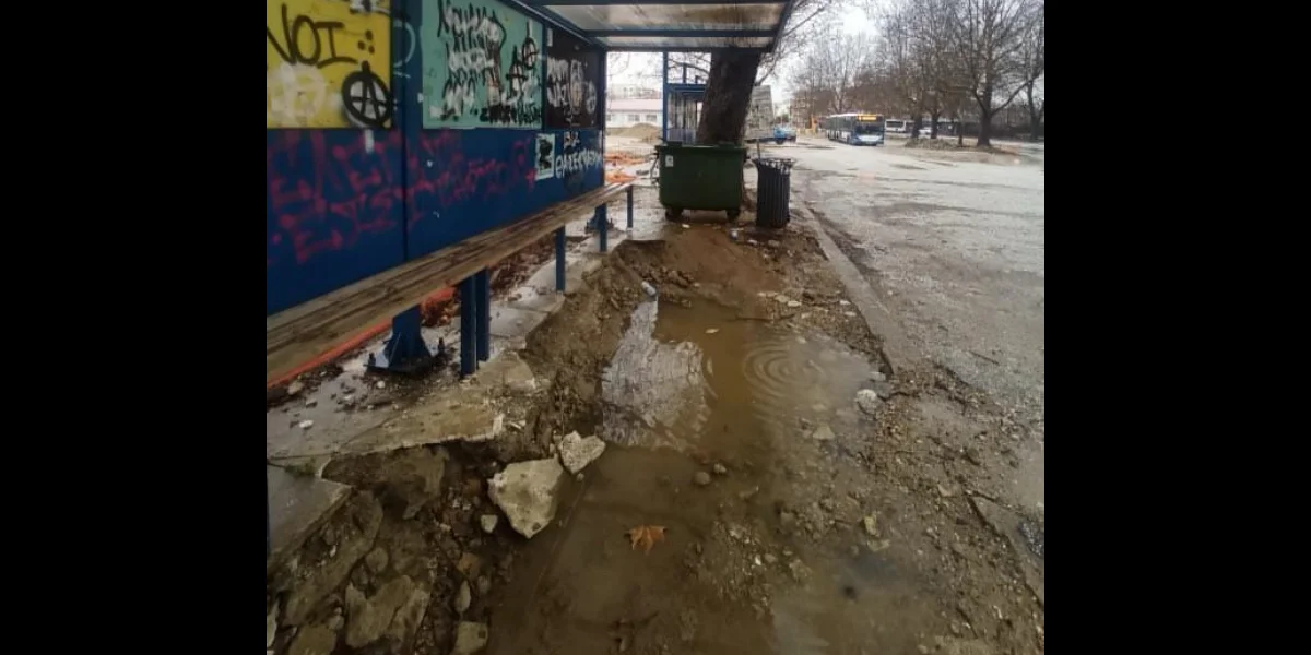 Σύμφωνα με την καταγγελία, η οποία συνοδεύεται και από σχετικό φωτογραφικό υλικό, ο χώρος της στάσης παρουσιάζει εκτεταμένες φθορές, με λακκούβες και συγκέντρωση υδάτων, καθιστώντας την αναμονή των επιβατών κάτω από το στέγαστρο πρακτικά αδύνατη. Η κατάσταση επιδεινώνεται κατά τη διάρκεια των βροχοπτώσεων, αναγκάζοντας τους φοιτητές να παραμένουν εκτεθειμένοι στις καιρικές συνθήκες.