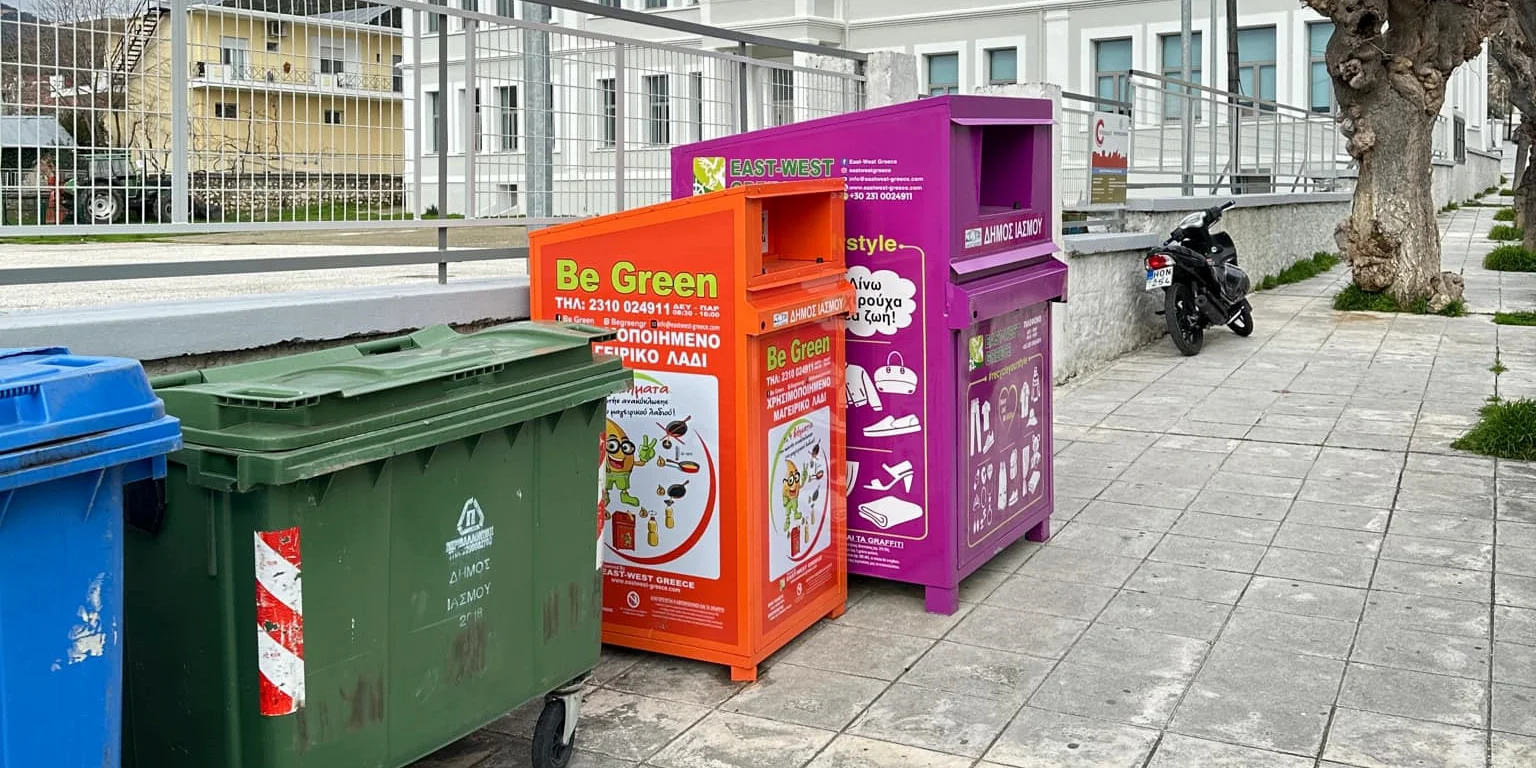 Ήδη έχουν τοποθετηθεί ειδικοί κάδοι σε κεντρικά σημεία του Ιάσμου, του Σώστη, των Αμαξάδων και των Ασωμάτων. Ιδιαίτερη έμφαση δίνεται στη συλλογή χρησιμοποιημένων μαγειρικών ελαίων (πορτοκαλί κάδοι) και ειδών ένδυσης/υπόδησης (μωβ κάδοι), ενώ παράλληλα δημιουργούνται σημεία συλλογής για λαμπτήρες, τόνερ και ηλεκτρικές συσκευές εντός των δημοτικών καταστημάτων.