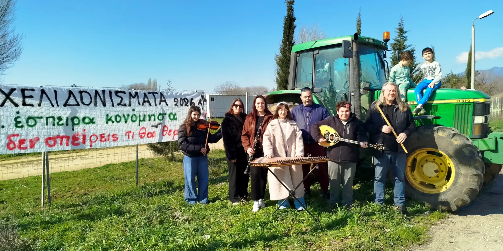 Ο μουσικός Χρήστος Χατζόπουλος, μαζί με μαθητές από το Μουσικό Εργαστήρι «ΝΟΤΑ», αναβίωσαν το αρχαίο έθιμο των «Χελιδονισμάτων», στέλνοντας παράλληλα ένα ηχηρό μήνυμα συμπαράστασης στον αγροτικό κόσμο.