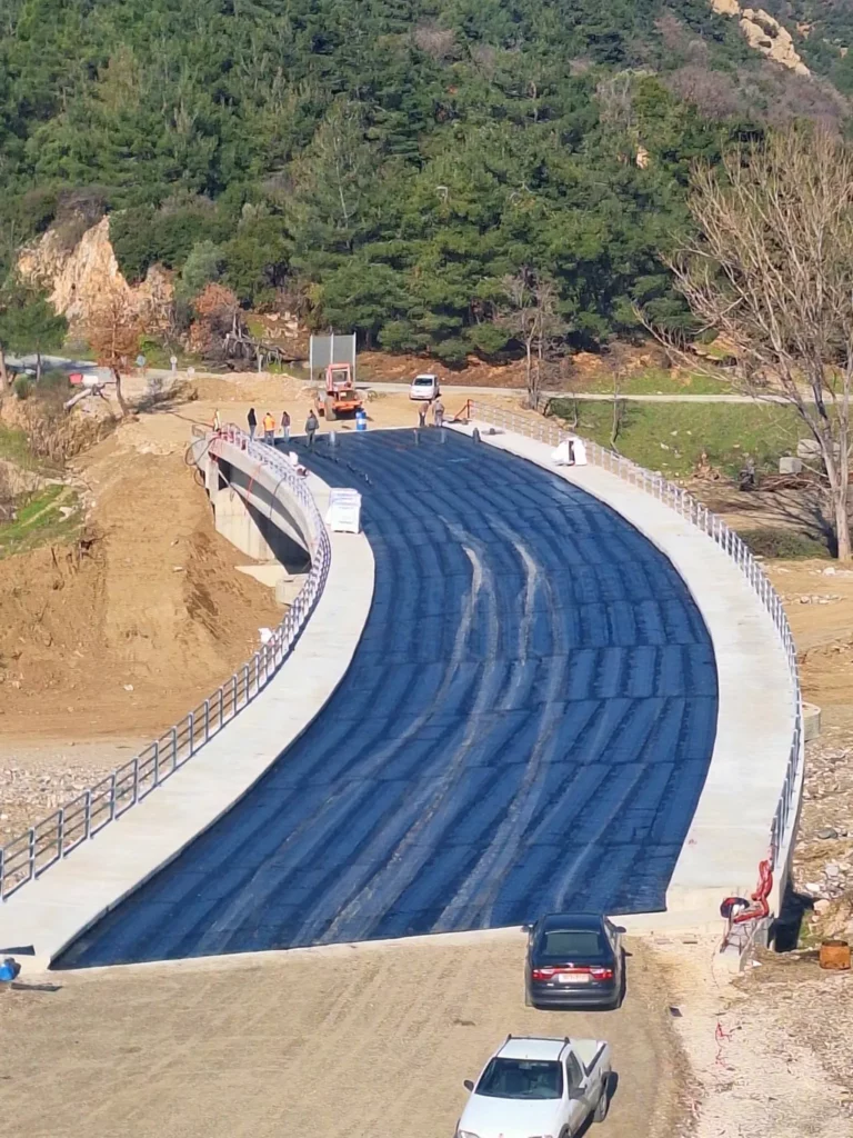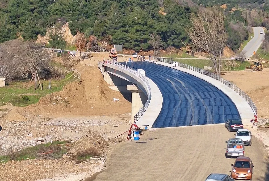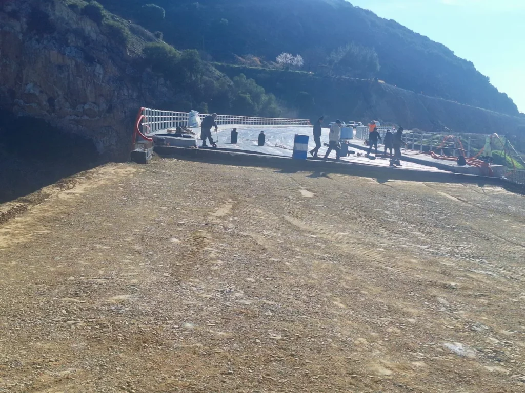 Μετά τη στεγανοποίηση της πλάκας, απομένουν οι ασφαλτοστρώσεις και τα στηθαία ασφαλείας για την ολοκλήρωση της