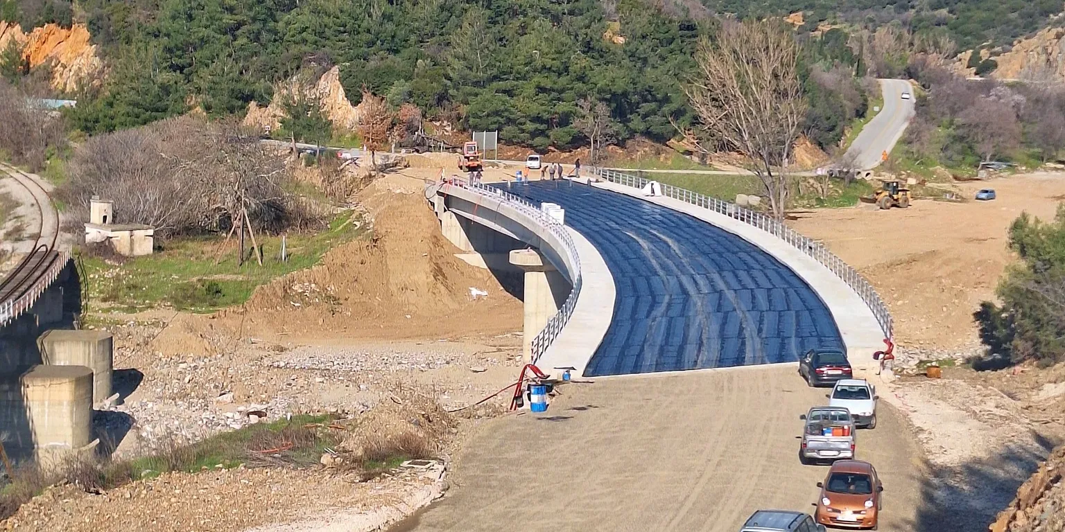 Μετά τη στεγανοποίηση της πλάκας, απομένουν οι ασφαλτοστρώσεις και τα στηθαία ασφαλείας για την ολοκλήρωση της