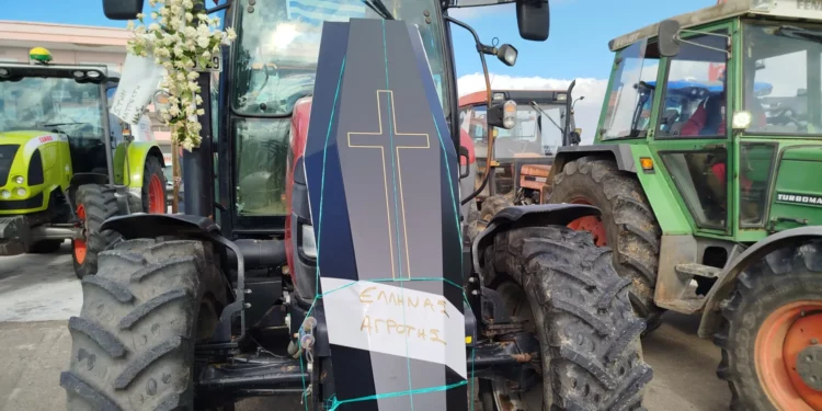 Η αγροτιά πεθαίνει: Αγρότες έβαλαν φέρετρο και στεφάνι κηδείας πάνω στα τρακτέρ τους